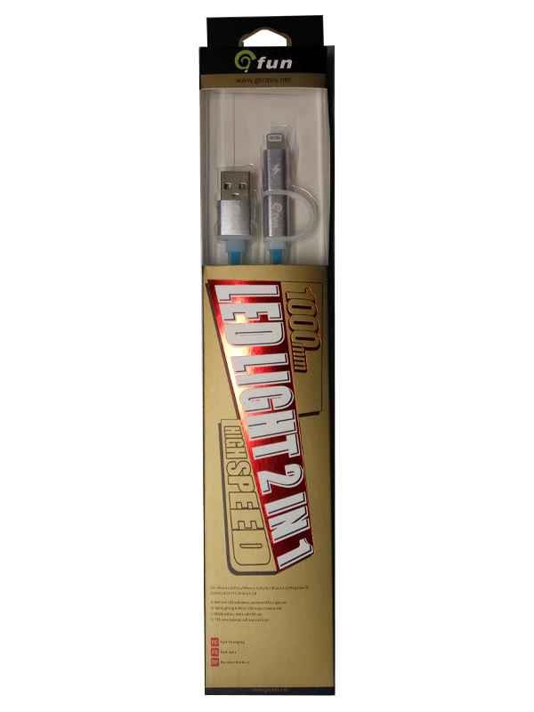 ΚΑΛΩΔΙΟ GFUN ΜΕ LED 2 ΣΕ 1 USB ΣΕ MICRO USB/LIGHTING BLUE