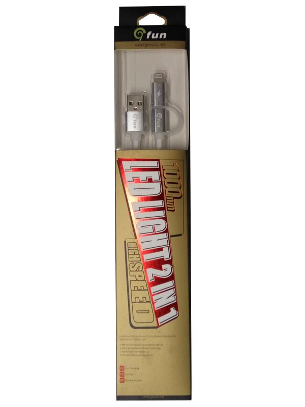 ΚΑΛΩΔΙΟ GFUN ΜΕ LED 2 ΣΕ 1 USB ΣΕ MICRO USB/LIGHTING WHITE