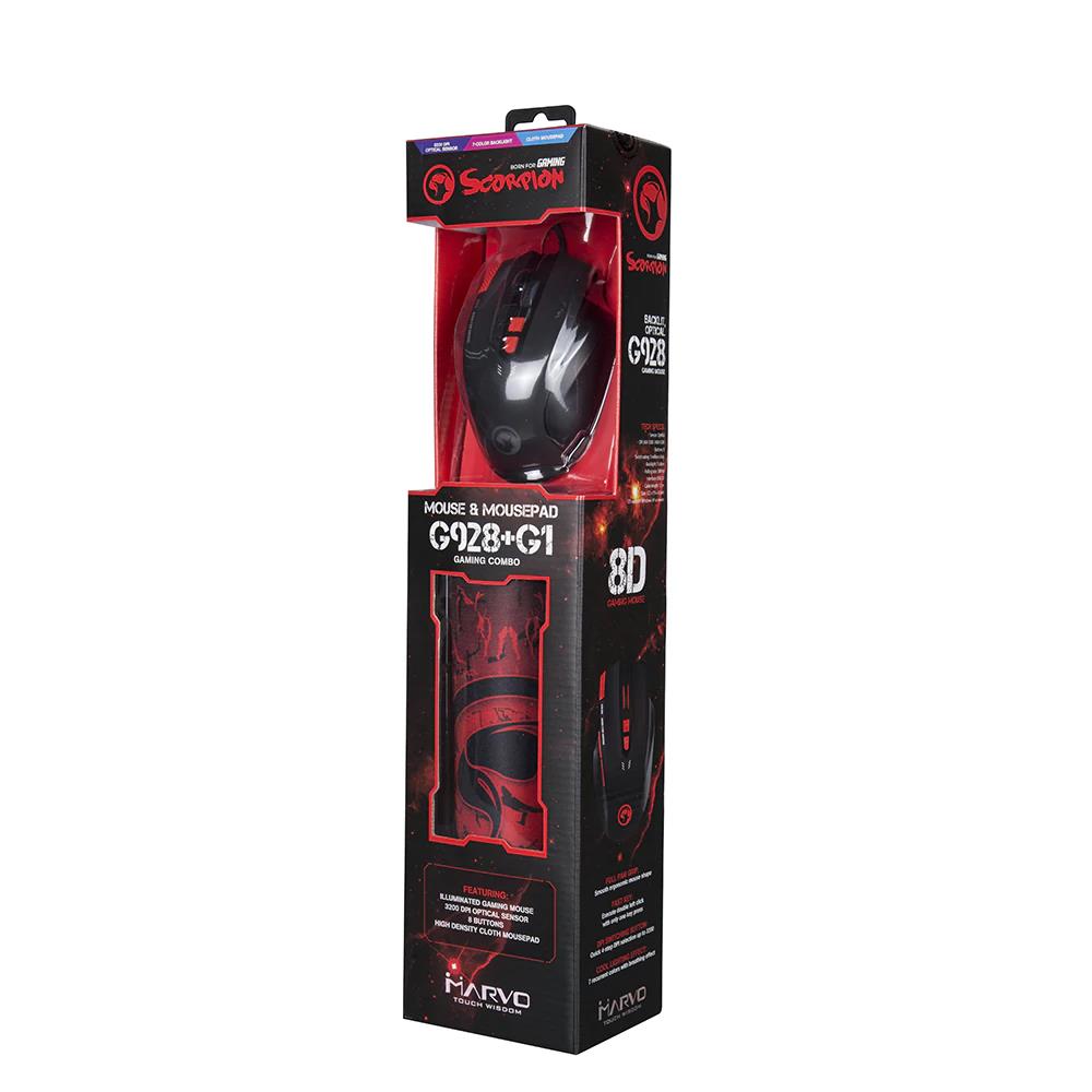 MARVO G928+G1 ΕΝΣΥΡΜΑΤΟ GAMING ΠΟΝΤΙΚΙ+MOUSEPAD